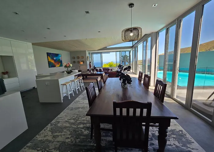 De 6-slaapkamer A Symphony Of Glass, Sea & Skies Kaapstad villa heeft een zwembad voor de ontspanning van de gasten en ligt binnen 3 km van het Nationaal park Tafelberg. Dit vakantiehuis biedt toegang tot een terras en nodigt gasten uit om de St. George Kathedraal te bezoeken, die op 10 minuten rijden verderop ligt.